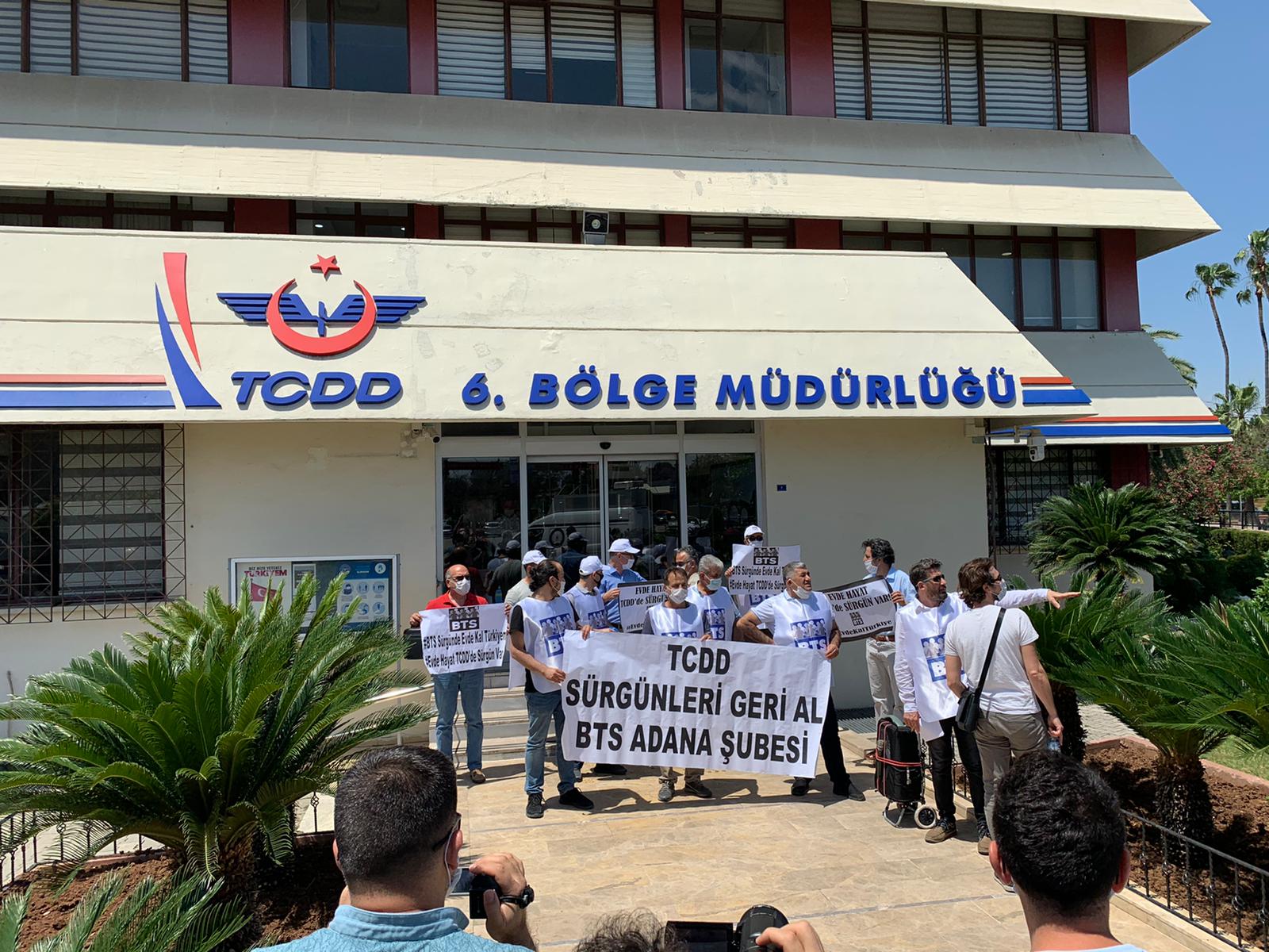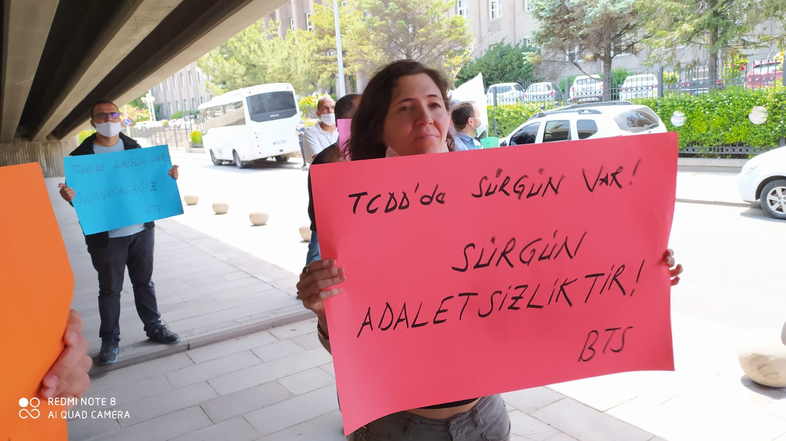 KESK’e bağlı Birleşik Taşımacılık Çalışanları Sendikası (BTS), üeyelerinin TCDD’de sürgün edilmesi ile ilgili bölge müdürlükleri ve TCDD Genel Müdürlüğü önünde basın açıklaması yaptı