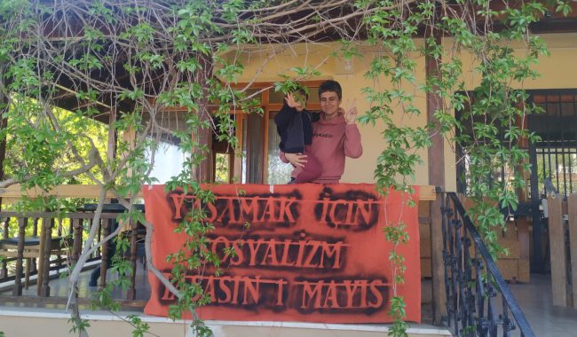 Ayrıca Çanakkaleliler 1 Mayıs’ı balkon ve pencerelerine astıkları pankartlarla selamladı.