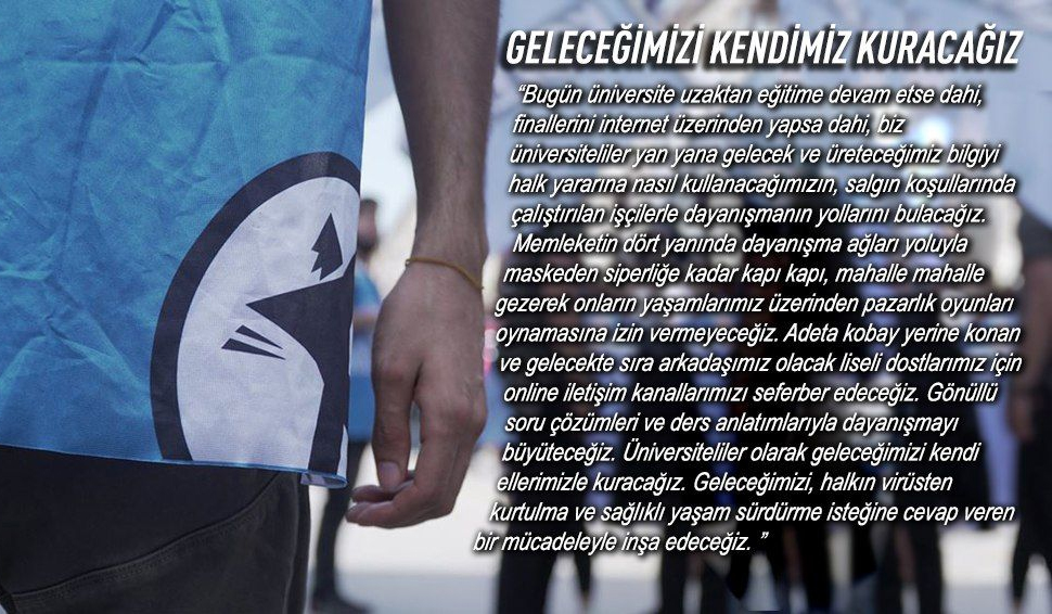AKP’nin halk sağlığını hiçe sayan normalleşme çağrılarının cebini doldurma stratejisinin bir parçası ve sermayenin yararına bir hamle olduğunu belirten üniversiteliler açıklamalarının devamında şu ifadelere yer verdi: