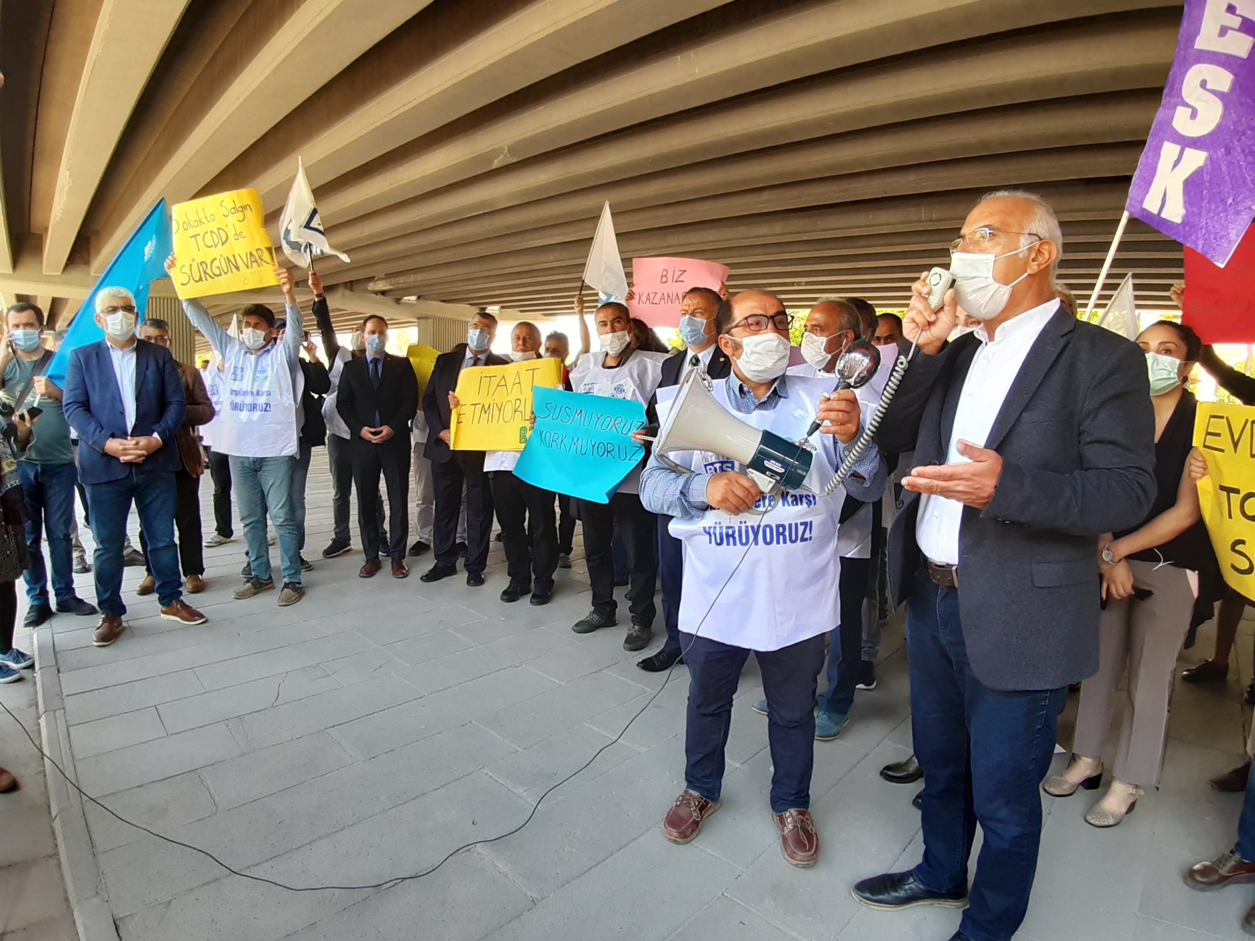KESK’e bağlı Birleşik Taşımacılık Çalışanları Sendikası (BTS), TCDD’deki sürgünlerin durdurulması için TCDD Genel Müdürlüğü önünde açıklama yapan işçiler, TCDD Genel Müdürü ve Ulaştırma ve Altyapı Bakanı ile görüşene kadar Ankara’da olacaklarını belirtti