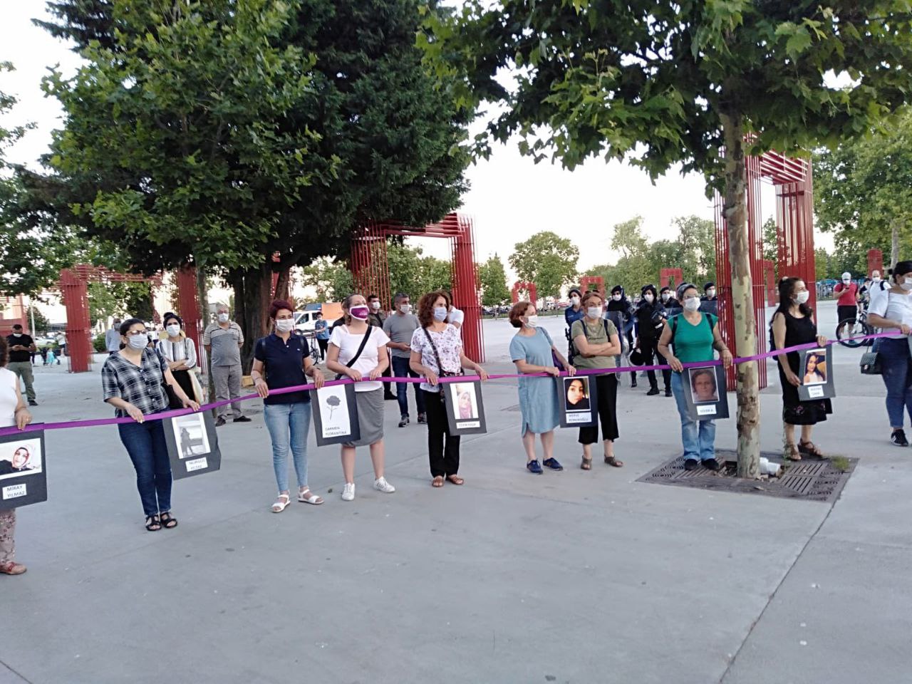 Kartal Kadın Dayanışması önceki gün (28 Haziran) Kartal Meydan’da kadın cinayetlerini protesto etti. Ellerinde katledilen kadınların fotoğraflarını taşıyan kadınlar basın açıklaması yapmadan önce katledilen kadınların isimlerini söyleyerek “Burada” diye haykırdı.