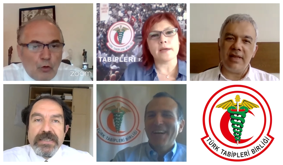 Online gerçekleştirilen basın toplantısına TTB Merkez Konseyi Başkanı Prof. Dr. Sinan Adıyaman, TTB COVID-19 İzleme Grubu üyeleri Klinik Mikrobiyoloji ve İnfeksiyon Hastalıkları Uzmanı Prof. Dr. Özlem Azap, Psikiyatri Uzmanı Prof. Dr. Meram Can Saka ile Halk Sağlığı Uzmanları Prof. Dr. Kayıhan Pala ile Doç. Dr. Cavit Işık Yavuz katıldı.