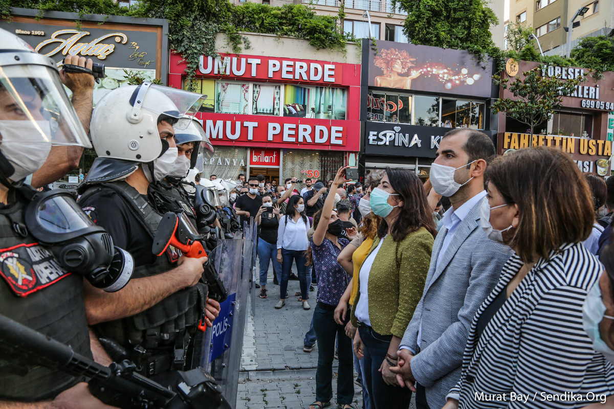 On the second day of the march approaching from the northwest, the participants entered the Esenyurt district where the police had already erected barriers to prevent them. The marchers and the local supporters confronted the police and shouted, “HDP is the people and the people are here” and “HDP is the hope and hope is alive.” They also shouted “Shoulder to shoulder against fascism.”