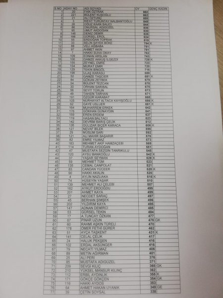 - Bülent Yücetürk (554 oy) listede 13’üncü, Yiğit Acar (509 oy) da listede 15’inci sırada yer almasına karşın cinsiyet kotası gereğince kurula giremedi.
