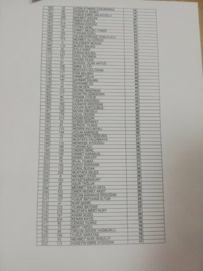 Parti Meclisi seçimi sonucunda 222 adayın aldıkları oylar ise sırasıyla şöyle: