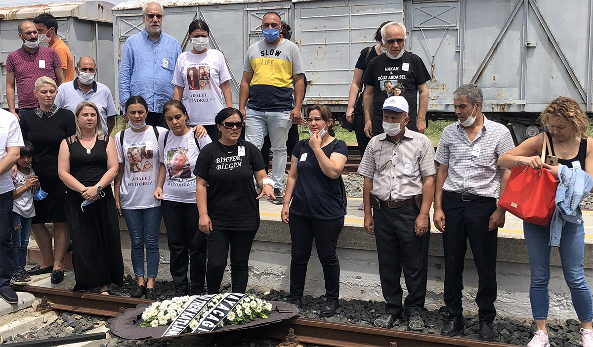 Aileler, yapılan konuşmaların ardından tren istasyonuna yürüyerek, raylara siyah çelenk bıraktı. Burada da kısa bir konuşma yapan Bilgin, “Her yaptığımız etkinlikte insandan çok polis, jandarma yanımızda. Benim canımı almadan önce emniyeti yapacaktınız ki bugün canlarımız yanmayacaktı. Okullarda olacaktı çocuklarımız. Bizim geleceğimizi çaldınız” dedi.