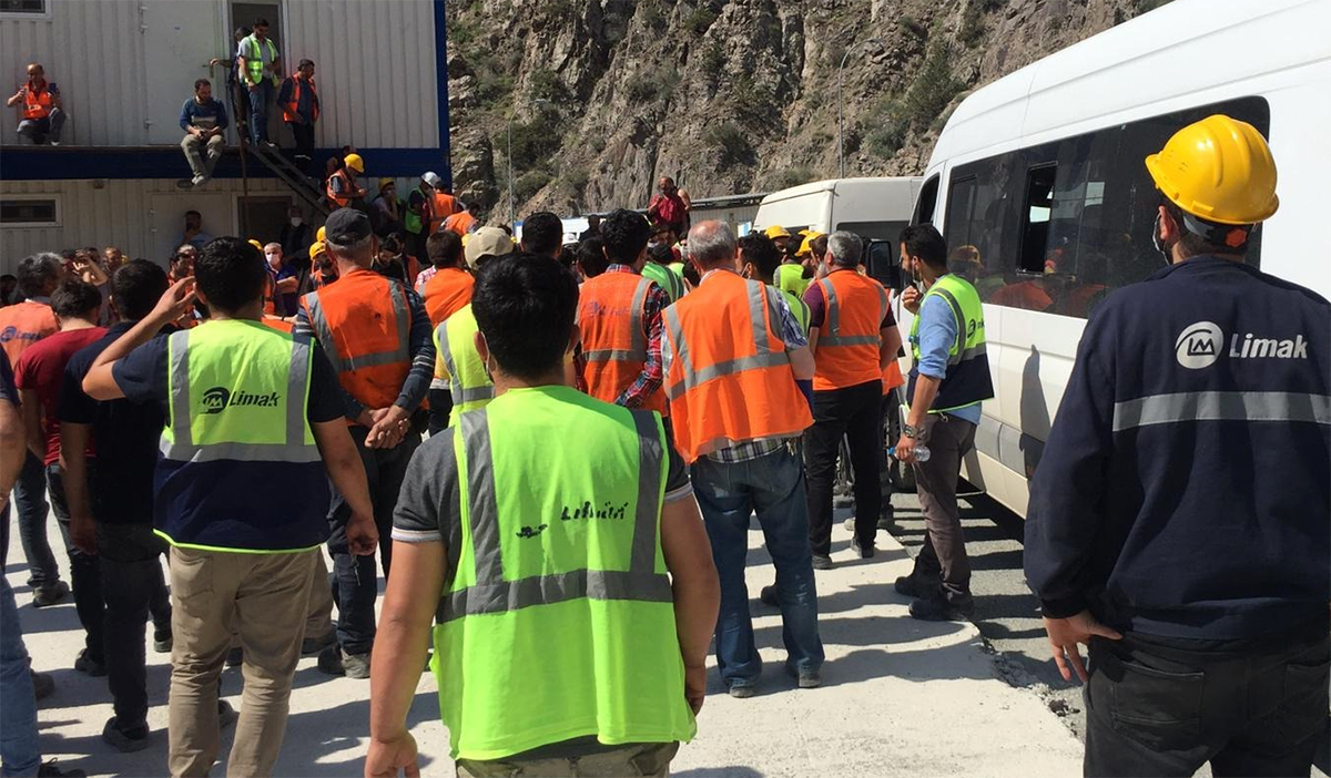 Artvin’de, Limak’ın Çoruh Nehri üzerinde inşa ettiği Yusufeli Barajı ve HES projesinde çalışan işçiler, koronavirüs (COVID-19) pandemisi gerekçesiyle 20 Mart’tan bu yana şantiye alanında tutuluyor. Yaklaşık 3,5 aydır dış dünyayla bağlantısı kesilen işçiler, yaşanan belirsizliğe isyan ederek bugün (2 Temmuz) iş bıraktı.