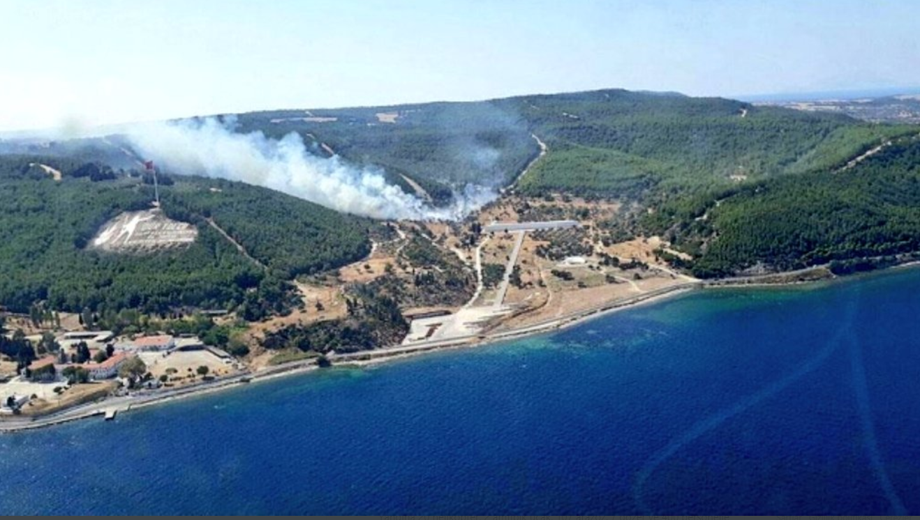 Yangın tarihi alanlara yaklaşırken, Çanakkale Boğazı kapatıldı. Orman ve itfaiye ekipleri havadan ve karadan yangına müdahale ediyor.? pic.twitter.com/EJm7cd2PYA