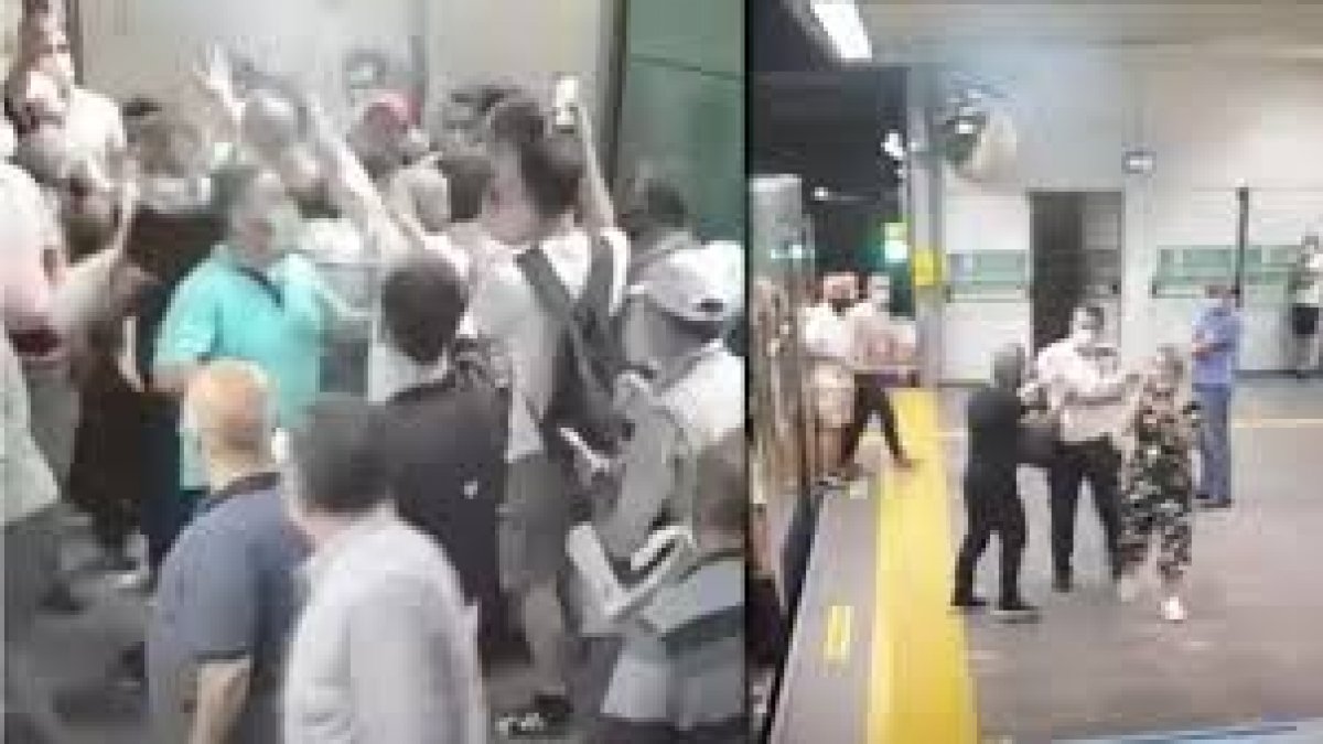 Makinist Gizem Gül daha makinist kabininden dışarı adımını atar atmaz öncülüğünü sarıklı ve cübbelilerin yaptığı en az 15-20 kişilik erkek güruhu üstüne yürüyerek linç etmeye çalışıyor.
