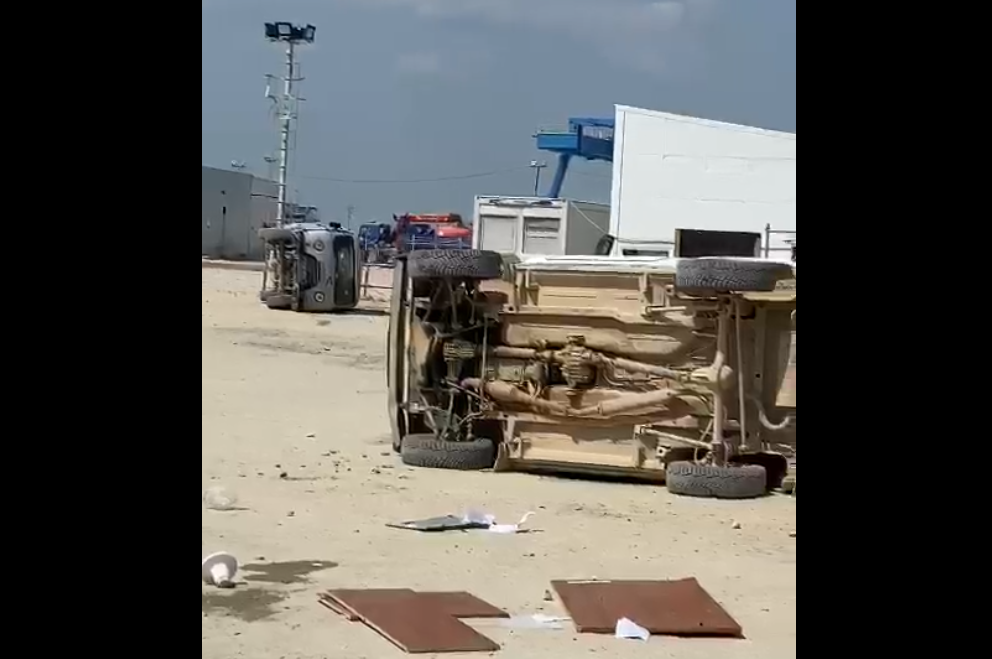 Maaşlarını alamayan ve aralarında koronavirüs vakalarının hızla arttığı işçiler şantiye sahasındaki araçları da devirdi.https://t.co/LnlaeRUAEp pic.twitter.com/B29tv58aJX