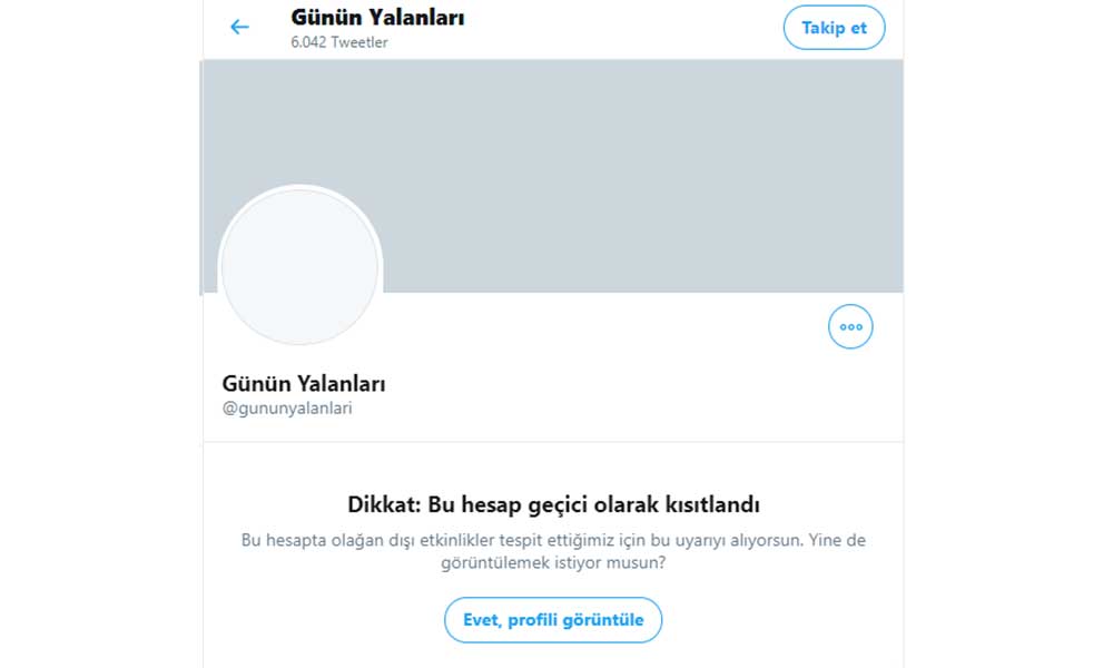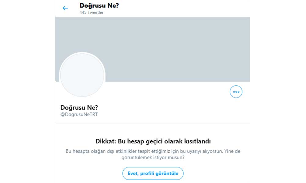 Aynı kliğin kullandığı @gununyalanlari ve @DogrusuNeTRT hesapları da “olağandışı etkinlik tespiti” gerekçesiyle kısıtlandı.