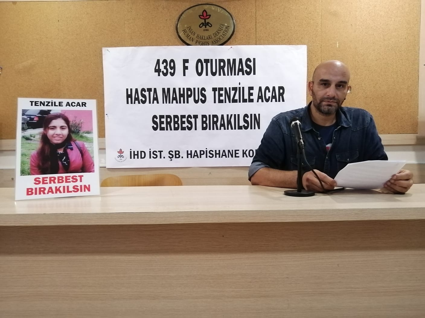 İnsan Hakları Derneği (İHD) İstanbul Şubesi Hapishane Komisyonu 439. F Oturması’nı gerçekleştirerek Bakırköy Kadın Kapalı Hapishanesi’nde tutulan Tenzile Acar’ın serbest bırakılmasını istedi.