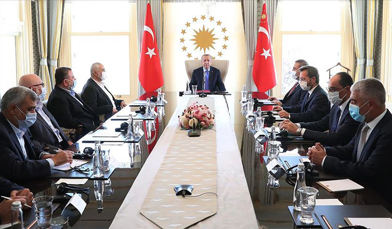 Görüşmede Hamas Siyasi Büro Şefi İsmail Heniye, Başkan Yardımcısı Salih el Aruri, yurtdışı temsilcisi Mahir Salah, Arap ve İslam dünyasıyla ilişkiler sorumlusu İzzet el Rihik ve Türkiye temsilcisi Cihad Yağmur yer alıyordu. Erdoğan Heniye’nin selefi Halid Meşal ile de defalarca görüşmüştü. BOB Eş Başkanlığı’nı layık gördükleri, Türkiye’yi Araplara ‘model ortak’ diye takdim ettikleri günlerde de Hamas’la ilişkiler vardı, öyle gizli kapaklı da değildi. Ki bu ‘hatırlı’ temaslar ABD-İsrail lehine şahane sonuçlar da verdi. Suriye’de çatışmalar başladığında İhvan’ın hamisi Katar ve Türkiye, o dönemde Şam’da barınan Meşal’in Suriye’ye sırt çevirmesini sağlamıştı. Erdoğan’ın Meşal’i ağırlaması da tantana konusuydu.