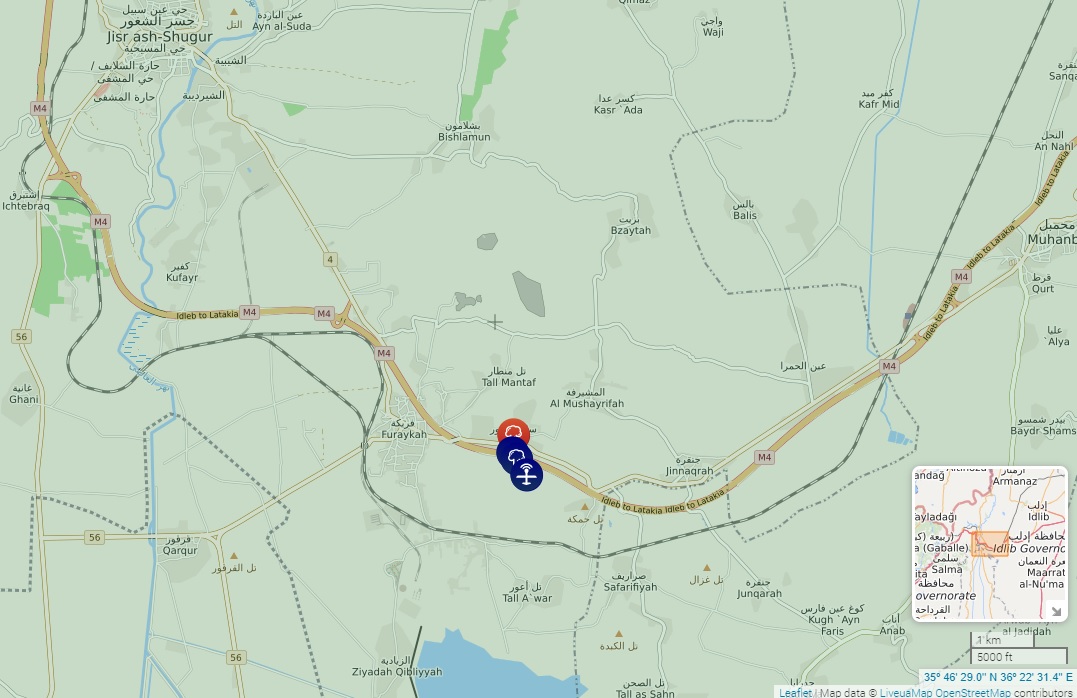 İdlip’te cihatçılarca hedef alınan TSK üssünün konumu. [Harita: Liveuamap]