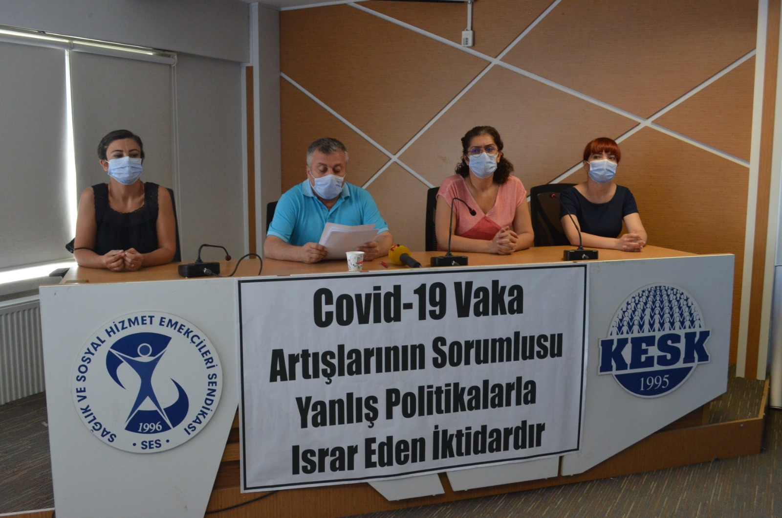 Sağlık ve Sosyal Hizmet Emekçileri Sendikası (SES) “normalleşme” sürecinin ardından son haftalarda yaşanan vaka artışları ile ilgili Ankara’daki genel merkezinde basın toplantısı düzenledi.