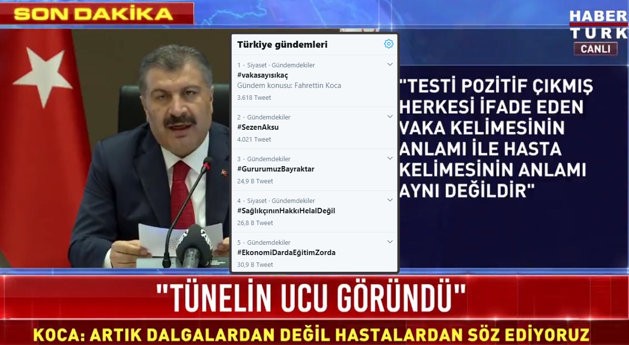 Bakan Koca’nın tablo itirafı sonrası Twitter’da “#vakasayısıkaç” etiketi Türkiye gündeminde ilk sıraya yükseldi.