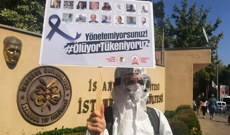 Siyah kurdele takmak, hele hele yas tutmak büyük suç. Yüze yakın sağlık çalışanının yaşamını yitirdiği COVID-19 gündemini görmeyen, bu gündemin gereklerini yerine getirmeyen, bu konudaki gördüğü eksiklik, aksaklık ve yanlışları eleştirip göstermeyen, gündem değiştirme ya da başka saiklerle polemik yaratan ya da hangi sebeple olursa olsun COVID-19 pandemisi gündemini yok saymaya çalışanla; salgınla ilgili gerekenler yapıldığında ve salgın kontrol altına alındığında hayatları kurtarılabilecek olan hastaların ve sağlık çalışanlarının vebalini taşıyacağını söylüyor Türk Tabipleri Birliği. Üyesi olmaktan onur duyduğum meslek örgütüm öncelikli ve temel hedefimizin COVID -19 salgınından yurttaşlarımızın en az can kaybı ve en az hasta ile çıkması, yine salgının en ön safında yer alan hekimler ve sağlık çalışanları olarak bizlerin de az kayıp vermemiz olduğunu vurguluyor. Buradan bu süreçte hakikati yılmadan dile getiren tüm TTB emekçilerine sonsuz teşekkürlerimi iletiyorum. TTB’nin dile getirdiklerini ve sorusunu bir kez de ben sormuş olayım: “TTB’nin söylem ve eylemleri, doğal olarak ülkeyi ve sağlık sistemini yönetenleri uyarma, eleştirme ve sonuç olarak etkileme amaçlıdır. Şeffaf ve güven veren bir tarzda yönetilmeyen salgın sürecinde vaka ve ölüm sayılarının her gün arttığı; hekimlerin ve sağlık çalışanlarının kendi can kaygısının yanı sıra, yakınlarına bulaştırma korkusu ve geleceğe dair umutsuzlukla tükenme noktasına geldikleri bir süreçte, hekimler ve sağlık çalışanları değil de kimler konuşacak?”