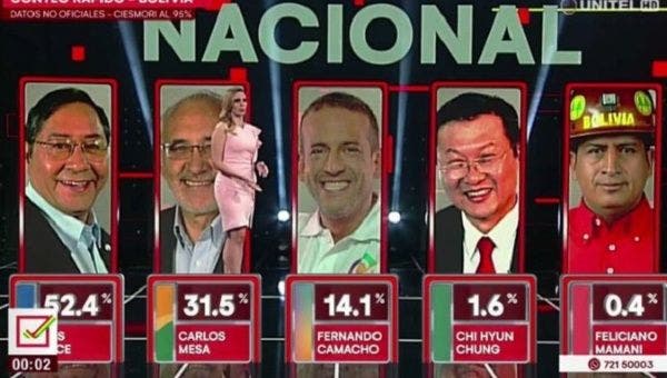 Resmi sonuçlara göre Luis Arce oyların yüzde 52,4’ünü, eski devlet başkanlarından sağcı Carlos Mesa yüzde 31,5’ini ve Luis Fernando Camacho da yüzde 14,1’ini aldı.