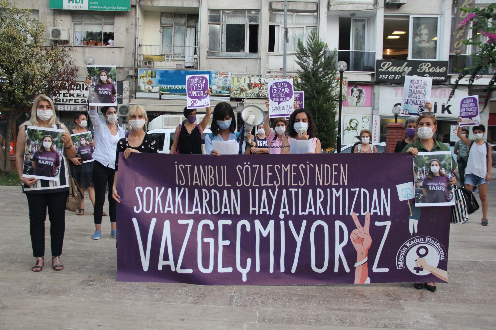 Basın açıklaması yapan kadınlar, “Kararlıyız. İstanbul Sözleşmesi’nden, sokaklardan, haklarımızdan vazgeçmiyoruz” dedi.