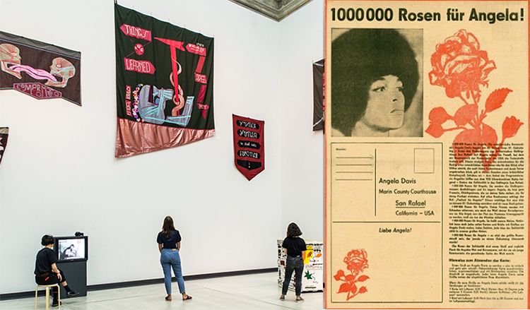 sergi, 1970-1972 yılları arasında tutuklu bulunan angela davis için demokratik alman cumhuriyeti devleti tarafından düzenlenen bir kart gönderme kampanyasının yıldönümünü sebebiyle düzenlenmiş. soğuk savaş’ın zirvede olduğu o yıllarda, angela davis’e verilen destekle simgelenen kültürel hatıranın bir parçası; davis, dac medyasında “öteki amerika’nın kahramanı” olarak tanımlanmış ve hapisten çıktıktan sonra devlet konuğu olarak ağırlanmış. ama sergide o dönem, yine demokratik almanya’da gerçekleşen insan hakları ihlallerine dair işler de yer alıyor.