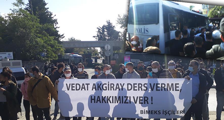 Dört yıldır maaş ve tazminatları verilmeyen Bimeks işçileri, Boğaziçi Üniversitesi önünde açıklama yaptı.“Vedat Akgiray ders verme, hakkımızı ver!” pankartının açıldığı basın açıklamasının ardından işçilere polis saldırarak ve 7 kişiyi gözaltına aldı.