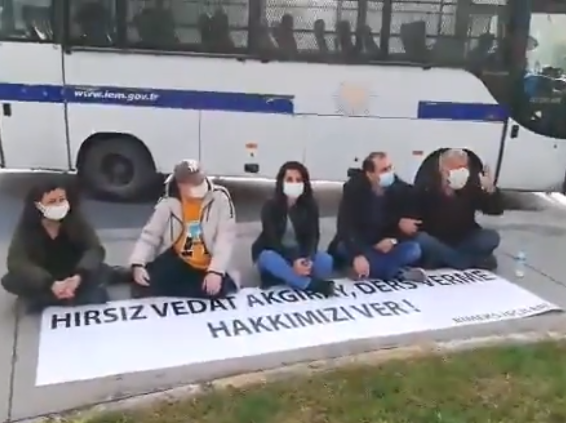 Bimeks işçileri hakları için bugün (10 Aralık) yine Boğaziçi Üniversitesi önüne giderek, üniversitede akademisyenlik yapan Vedat Akgira’dan haklarını istedi