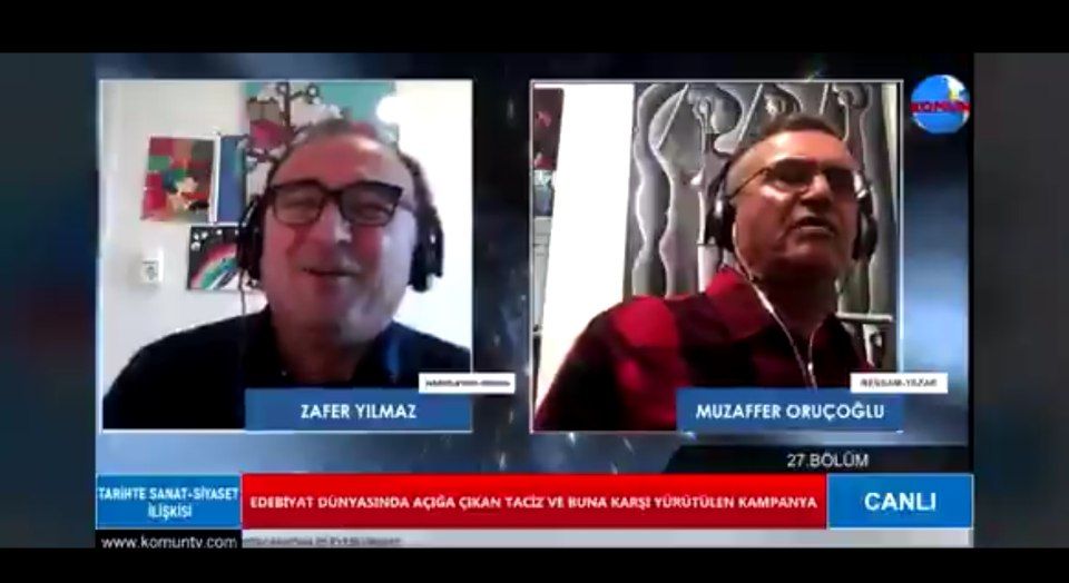 Youtube üzerinden yayın yapan Komün TV’de kadın hareketini değersizleştirmeye çalışan Muzaffer Oruçoğlu ve Zafer Yılmaz, program sonunda da kadın düşmanı söylemlerini taciz ile sonlandırdılar