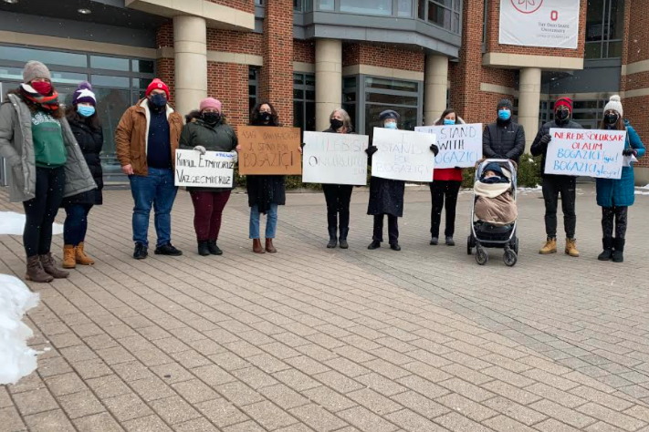 Bizler Ohio’da yaşayan Boğaziçi Üniversitesi mezunları ve destekçileri olarak, Boğaziçi Üniversitesi öğrencileri ve öğretim üyelerinin 4 Ocak’tan bu yana yürüttüğü haklı mücadelelerine destek vermek amacıyla bugün burada toplandık. Tüm üniversitelerde rektör seçimlerinin demokratik ve şeffaf süreçlerle belirlenmesi gerektiğine inanıyor ve en son örneğini Boğaziçi Üniversitesi’nde gördüğümüz bu anti-demokratik uygulamanın üniversitelerin bilimsel özgürlük ve akademik özerkliği ilkelerine aykırı olduğunu düşünüyoruz. Barışçıl protestolar gerçekleştiren öğrencilere yönelik şiddet ve baskı uygulamalarını kınıyoruz. Üniversitelerin özerkliği ve bilimsel özgürlük için mücadele eden bütün Boğaziçili arkadaşlarımız ve hocalarımızın yanında olduğumuzu belirtmek isteriz.