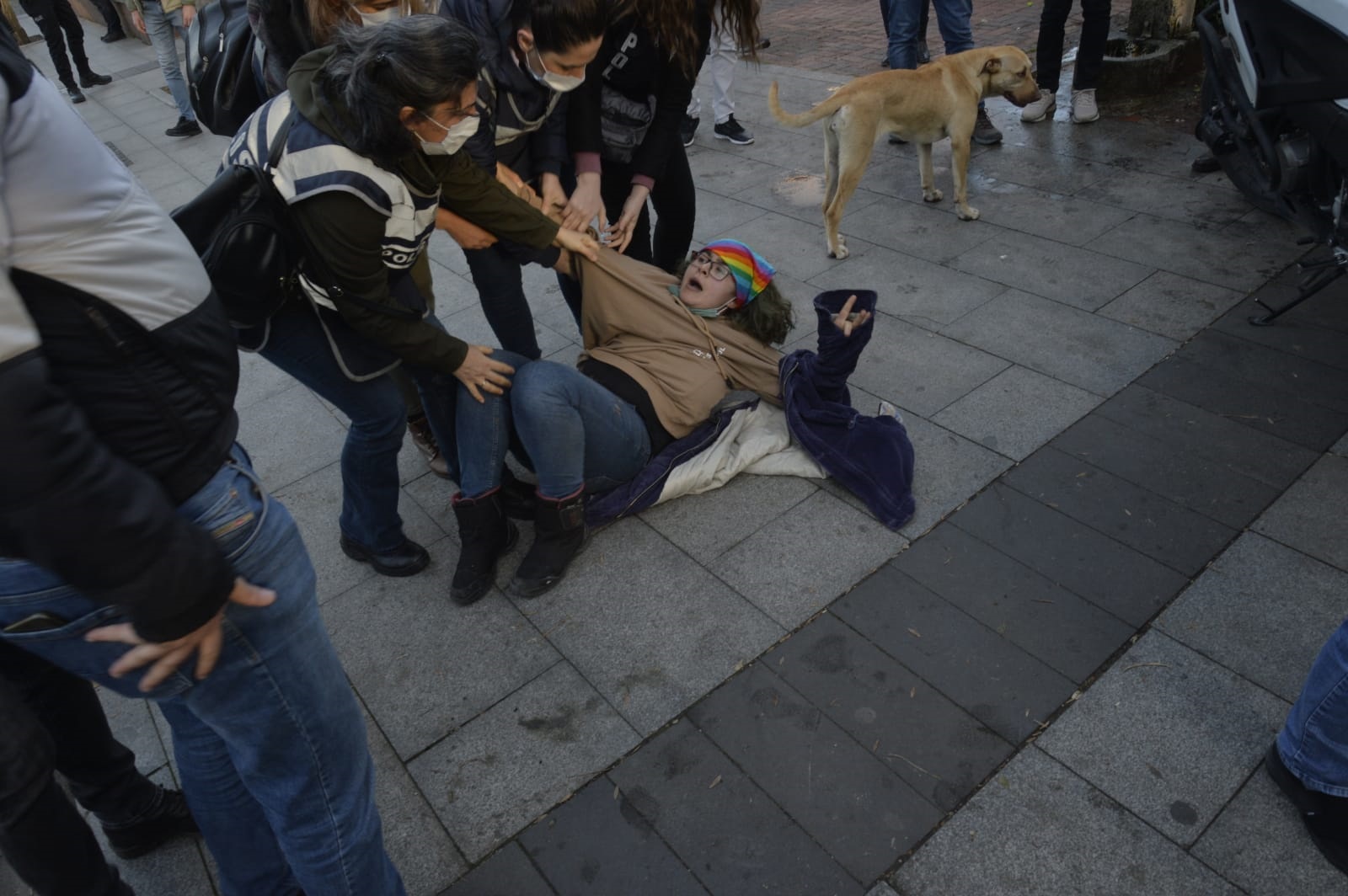 Yoldan geçen yurttaşlar da polis şiddetine tepki gösterdi.