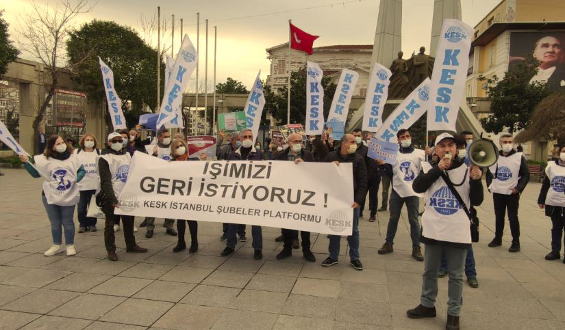 KESK İstanbul Şubeler Platformu dün (8 Şubat) Bakırköy Özgürlük Meydanı’nda basın açıklaması düzenledi. “İşimizi Geri İstiyoruz” başlığıyla yapılan açıklaması İstanbul Şubeler Platformu Dönem yürütme sözcüsü Eğitim Sen 9 No’lu Şube başkanı Hüseyin Özev okudu.