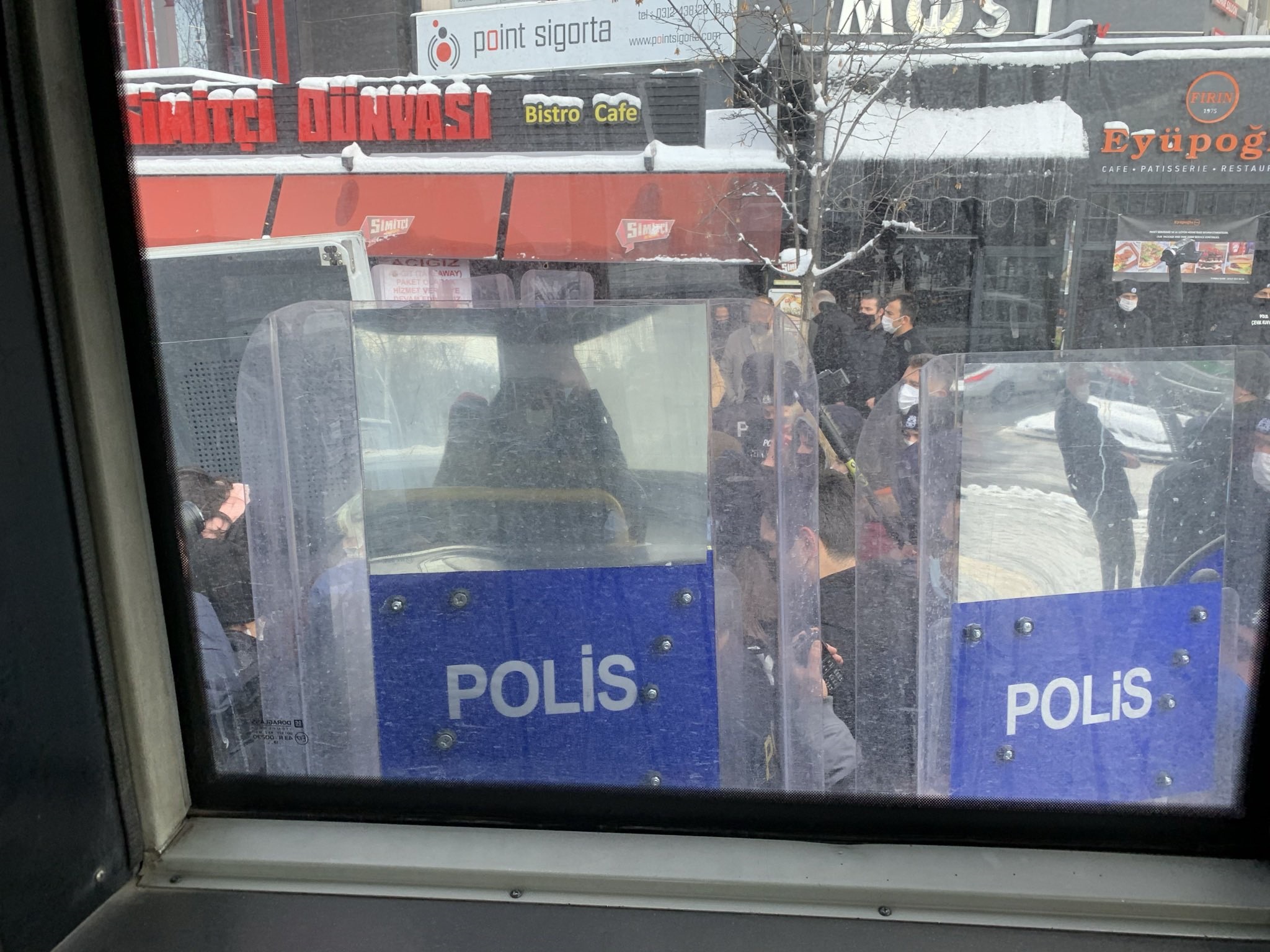 O sırada görüntü almak isteyen gazeteci Demet Aran’ın görüntü alması engellendi. Polis, Aran’ın görüntü almasını kalkanlarıyla engelledi.