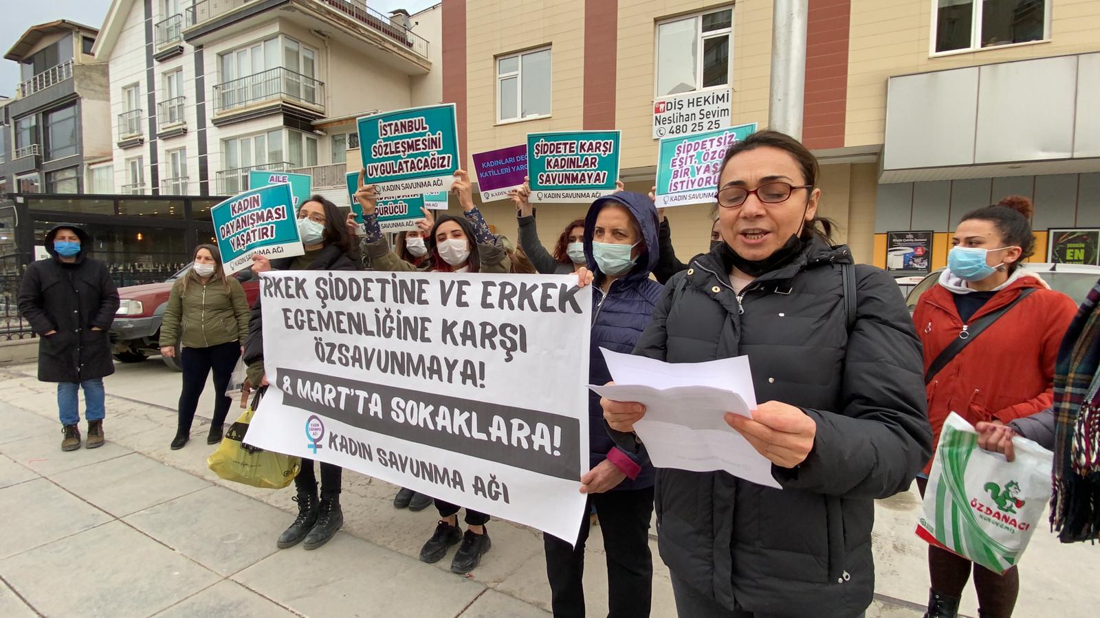 Kadın Savunma Ağı’ndan kadınlar Ankara İlker Mahallesi’nde bir basın açıklaması yaparak “Erkek şiddetine ve erkek egemenliğine karşı özsavunmaya, 8 Mart’ta sokaklara çağırıyoruz” dedi.