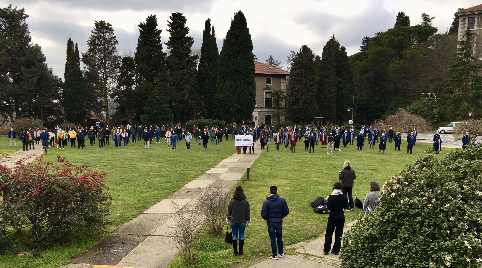 Boğaziçi Üniversitesi akademisyenleri, kayyum rektör Melih Bulu’ya karşı nöbetin 43. gününde bir kez daha “Kayyumluk” binasına sırtlarını döndü. Eyleme üniversiteliler de destek verdi. Üniversiteliler ardından hakkında soruşturma açılan 51 arkadaşları ile dayanışma için hazırladıkları dilekçelerini teslim etti