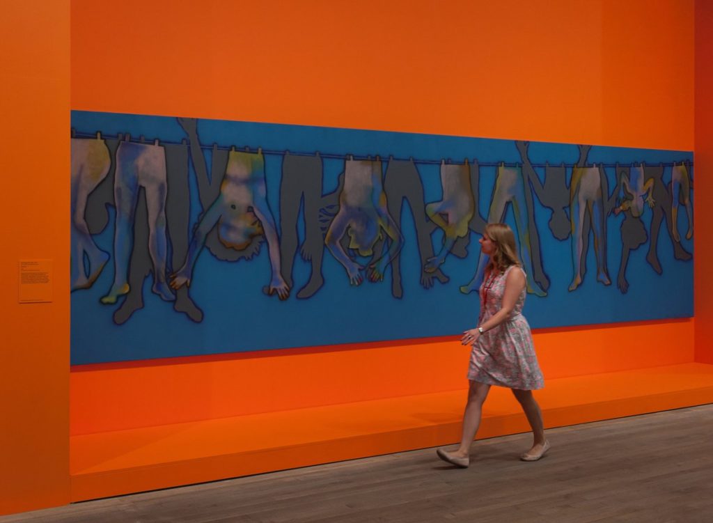 görsel: fotoğraf guy bell, 2015. tate modern’de kiki kogelnik’in 1971 tarihli friends adlı işinin önünde bir kadın.