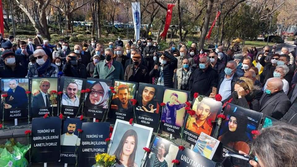Ankara’da 13 Mart 2016’da bomba yüklü araçla yapılan saldırıda hayatını kaybedenlerin aileleri ve yakınları katliamın yıldönümünde saldırının gerçekleştiği yerde bir araya geldi