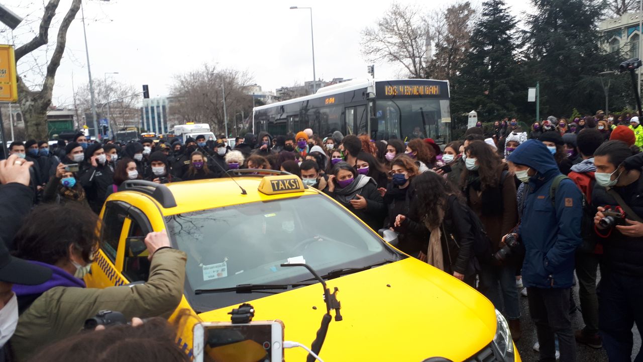 Gözaltı kararının çıkmasını bekleyen polis, arkadaşlarını gözaltına aldırmamak için direnen 3 kişiyi burada darp ederek gözaltına aldı. Ardından taksiden indirilen trans aktivistlerden 3’ü gözaltı araçlarına bindirildi.
