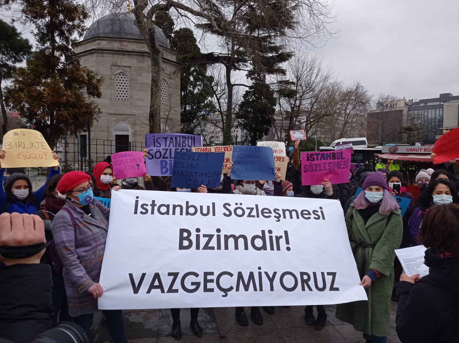 İstanbul Sözleşmesi’nin Resmi Gazete’de Erdoğan kararının yayımlanmasıyla karar açıklanmıştı. Kadınlar, 20 Mart’ta Kadıköy’de İstanbul Sözleşmesi’nin fesih kararına karşı bir araya gelmişti. Bu hafta kadınlar İstanbul’da her gün mahallelerde eylemde olacaklarını açıklamıştı. Kadınlar, dün 7 mahallede sokaktaydı bugün ise İstanbul’un 2 mahallesinde sokaktaydı. Kadınlar bu hafta İstanbul’un her yerinde eylemde. Cumartesi günü de tekrar Kadıköy’de eylemde olacaklar