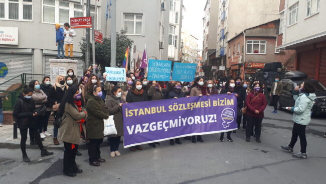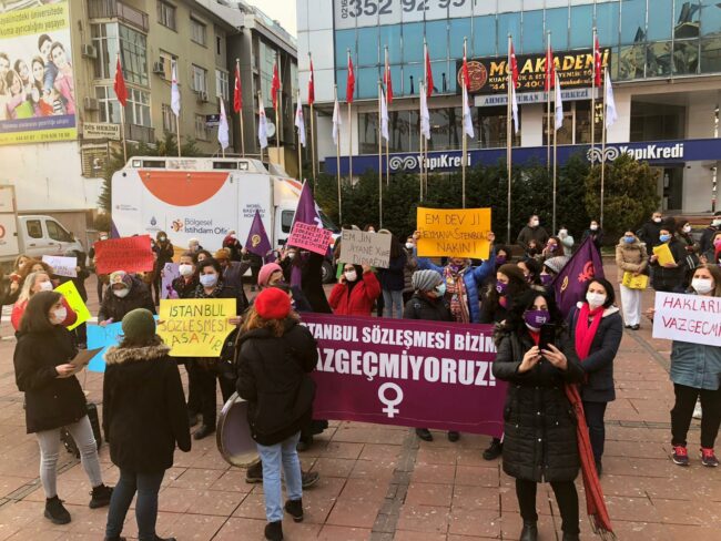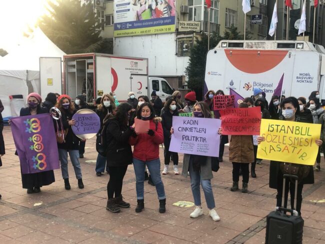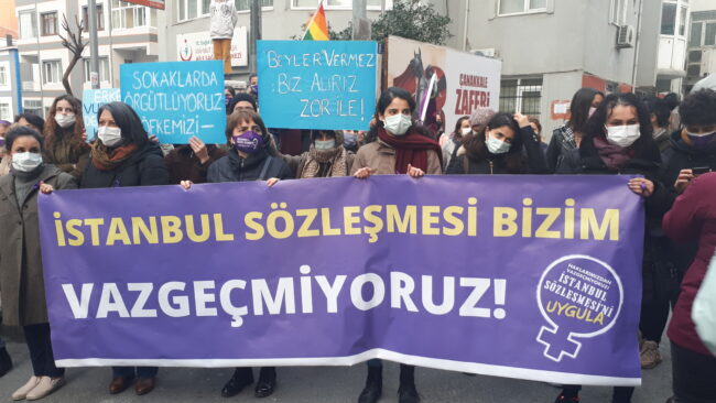 İstanbul Sözleşmesi bizlerin yıllardır süren mücadelesi sonucu yazıldı. Sözleşme’nin fesih kararını asla tanımıyoruz! Bir grup adamın sözünün, tek adamın kararının kadınların nezdinde hükmü yoktur! İstanbul Sözleşmesi gerektiği gibi uygulanıp, erkek şiddeti son bulana kadar mücadelemiz devam edecek. Kadın düşmanlarına karşı yaşasın kadın dayanışmamız!