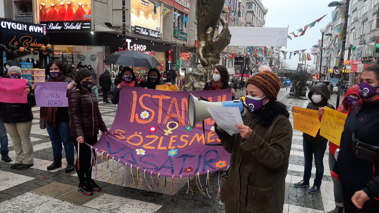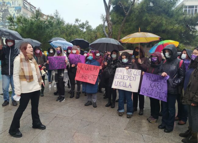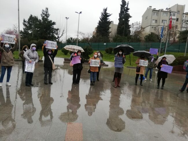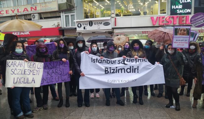 İstanbul sözleşmesi biz kadınlara yaptığınız bir lütuf değil kadın mücadelesi ile kazanılmış bir haktır. Haklarımızı, hayatlarımızı, irademizi yok saydığınız feshetme kararını asla tanımıyoruz. İstanbul Sözleşmesi gerektiği gibi uygulanana, erkek şiddeti son bulana kadar mücadelemiz devam edecek. Sizin değil bizim kararımız demekten, haklarımızı, hayatlarımızı savunmaktan vazgeçmiyoruz. Kadın düşmanı devlete karşı yaşasın kadın dayanışmamız, yaşasın feminist mücadelemiz.
