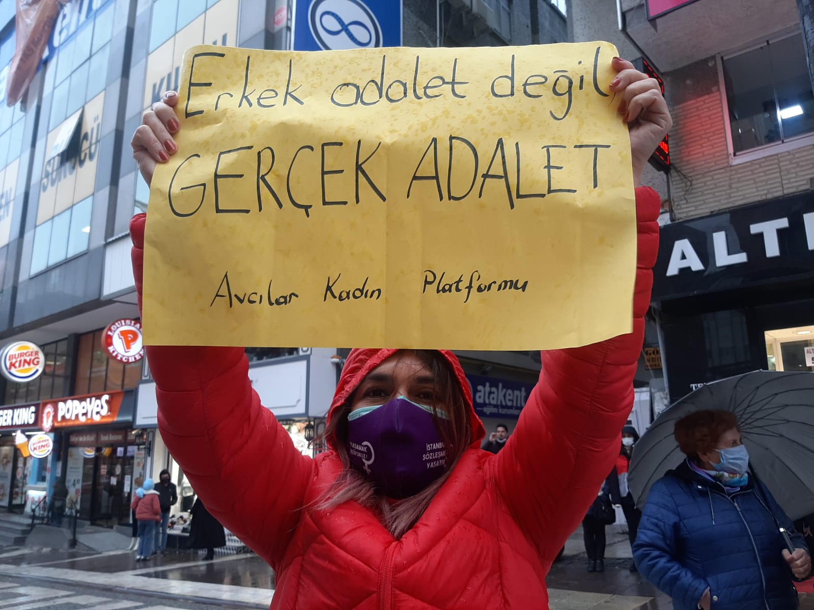 Avcılar’da kadınlar saat 18.00’de Deprem Anıtı önünde buluşarak burada “İstanbul Sözleşmesi Yaşatır” yazılı pankartı tutarak basın açıklaması yaptılar. Kadınlar ellerinde, “Jin, jiyan, azadi”, “6284’ü uygula”, “Yaşamak istiyoruz” ve “Kadınlar Birlikte Güçlü” yazılı dövizler taşıdı. Yağmurlu havaya rağmen kadınların eylemi çevreden destek gördü. Avcılar Kadın Platformu’nun çağrısıyla Deprem Anıtı önünde yapılan basın metnini Eğitim Sen 7 Nolu şube kadın sekreteri Gamze Yıldırım okudu. Yıldırım şunlar söylendi: