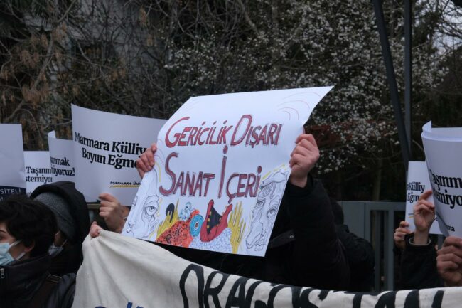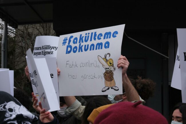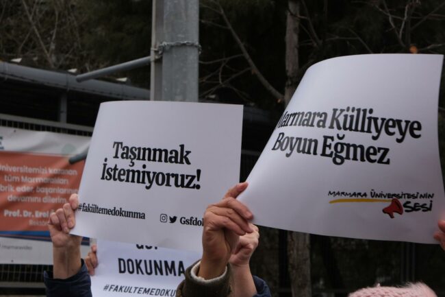 “Fakülteme dokunma” diyen Marmara Üniversitesi öğrencileri bugün (11 Mart) saat 17.00’de Acıbadem Kampüsü önünde bir araya gelerek, Marmara Üniversitesi Güzel Sanatlar Fakültesi’nin bulunduğu yapının onarılmasını ve eğitimlerini tespit edilen hasarların iyileştirilmesi ile beraber yenilenen binada almaya devam etmek istediklerini belirtti.