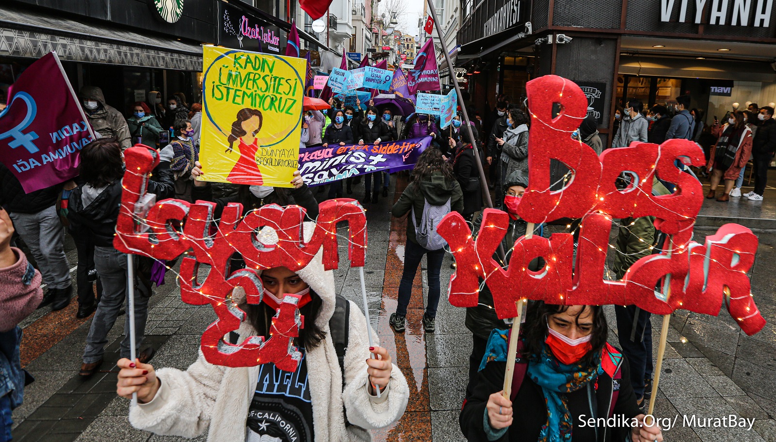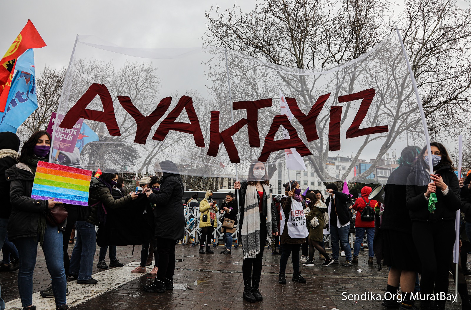 İstanbul 8 Mart Kadın Platformu’nun çağrısıyla kadınlar Kadıköy’deki mitingde buluştu. Mitingi yerinde takip eden Sendika.Org muhabiri Murat Bay’ın objektifinden kadınların engel tanımayan 8 Mart buluşması