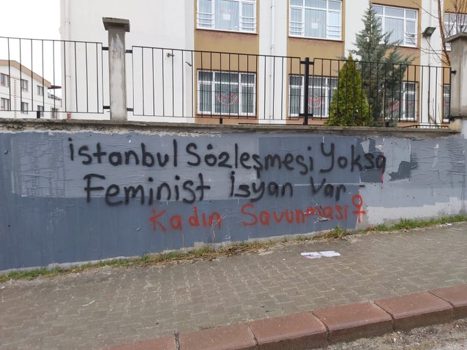 Following other cities where women are outraged and are protesting, the walls around Ankara neighborhoods now have the feminist messages: “Istanbul Convention makes women live, but the feminist uprising continues,” and “We are not giving up on our rights or our Istanbul Convention!”