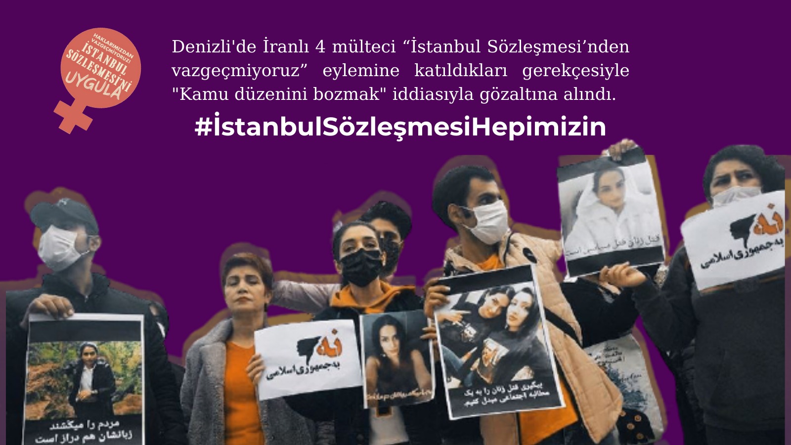 Denizli’de yaşayan 4 şartlı mülteci İstanbul Sözleşmesi için yapılan eyleme katıldığı için “Kamu düzenini bozmak” iddiasıyla gözaltına alındı.