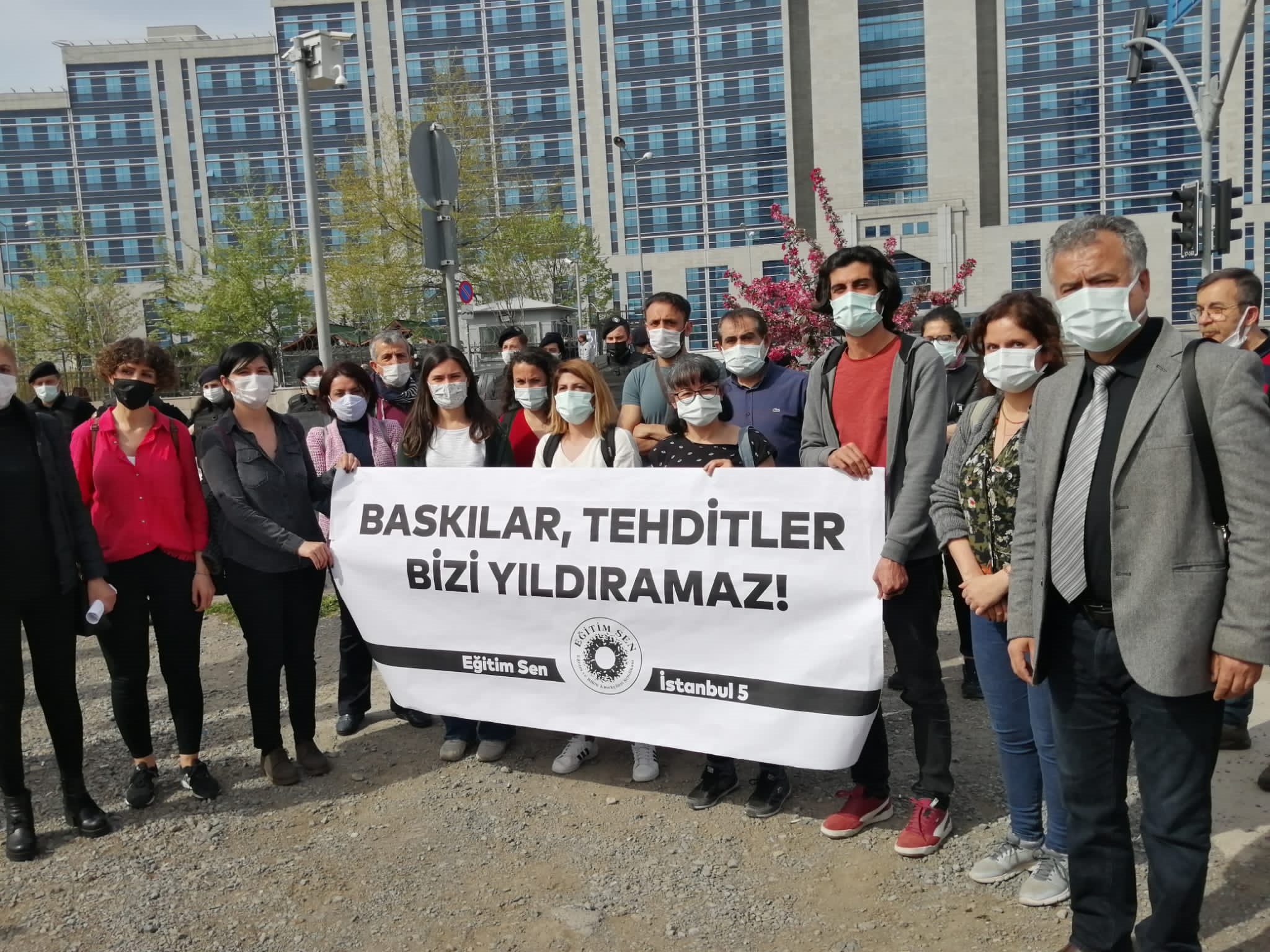 Eğitim Sen İstanbul 5 Nolu şube yürütme kurulu üyesi kadın öğretmen için 21 Nisan günü yapılan açıklamada, “Baskılar ve tehditler bizi yıldıramaz!” denilmişti.