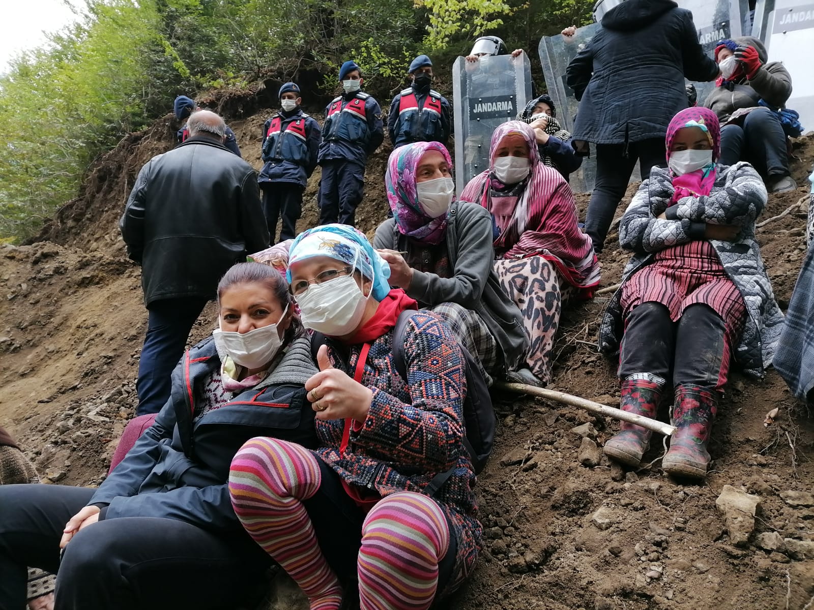 İkizdere’de yapılmak istenen taş ocağına karşı köylülerin direnişi sürüyor. Sabah erken saatlerde jandarma eşliğinde çalışmaya başlayan iş makinelerinin ağaçları kesmesine tepki gösteren köylüler patika yollardan vadiye ulaşıp jandarmanın karşısına dikildi