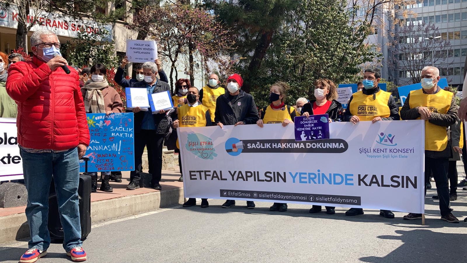 122 yıllık tarihi Şişli Hamidiye Etfal Hastanesi’nin Şişli’den taşınmasını istemeyen İstanbullular bir basın açıklaması yaparak hastanenin tam teşekküllü haliyle yerinde yapılandırılması talebini yinelediler. Eylemde 40 gün önce başlatılan imza kampanyasının sonuçları da açıklandı. Şişli Eftal’in kapatılmaması için toplamda 21 bini aşkın imza toplandığı belirtildi