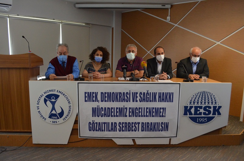 1,5 yıldır süren salgın boyunca sağlık emekçileri başta olmak üzere halkımızın sağlığı için yeterli tedbirleri almayan iktidar daha öncede çokça yaşadığımız gibi sağlık hakkı ve sağlık emekçilerinin haklı mücadelesinin öncülerine yöneliyor. Pandeminin başından itibaren sendikamız; sağlık ve sosyal hizmet emekçilerinin hakları, gerekse de halkın yaşam ve sağlık hakkı mücadelesinde sürekli sözünü kurmuş eylemini gerçekleştirmiştir. Hazmedilmeyen tamda bu mücadeledir. Bugüne kadar 417 sağlık emekçisi ve 46 bin 446 yurttaş Covid – 19 nedeniyle hayatını kaybetti. Ölümleri engellemeyenler, ölümler olmasın diye mücadele edenlere yöneliyor.