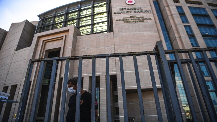A security guard stands in front of Istanbul’s courthouse on July 3, 2020, during the trial of 20 Saudi suspects accused of the murder of journalist Jamal Khashoggi in 2018. The trial in absentia of 20 Saudi suspects accused of the murder, including two former aides to Saudi Crown Prince Mohammed bin Salman, began in Istanbul on July 3, 2020. – OZAN KOSE/AFP via Getty Images