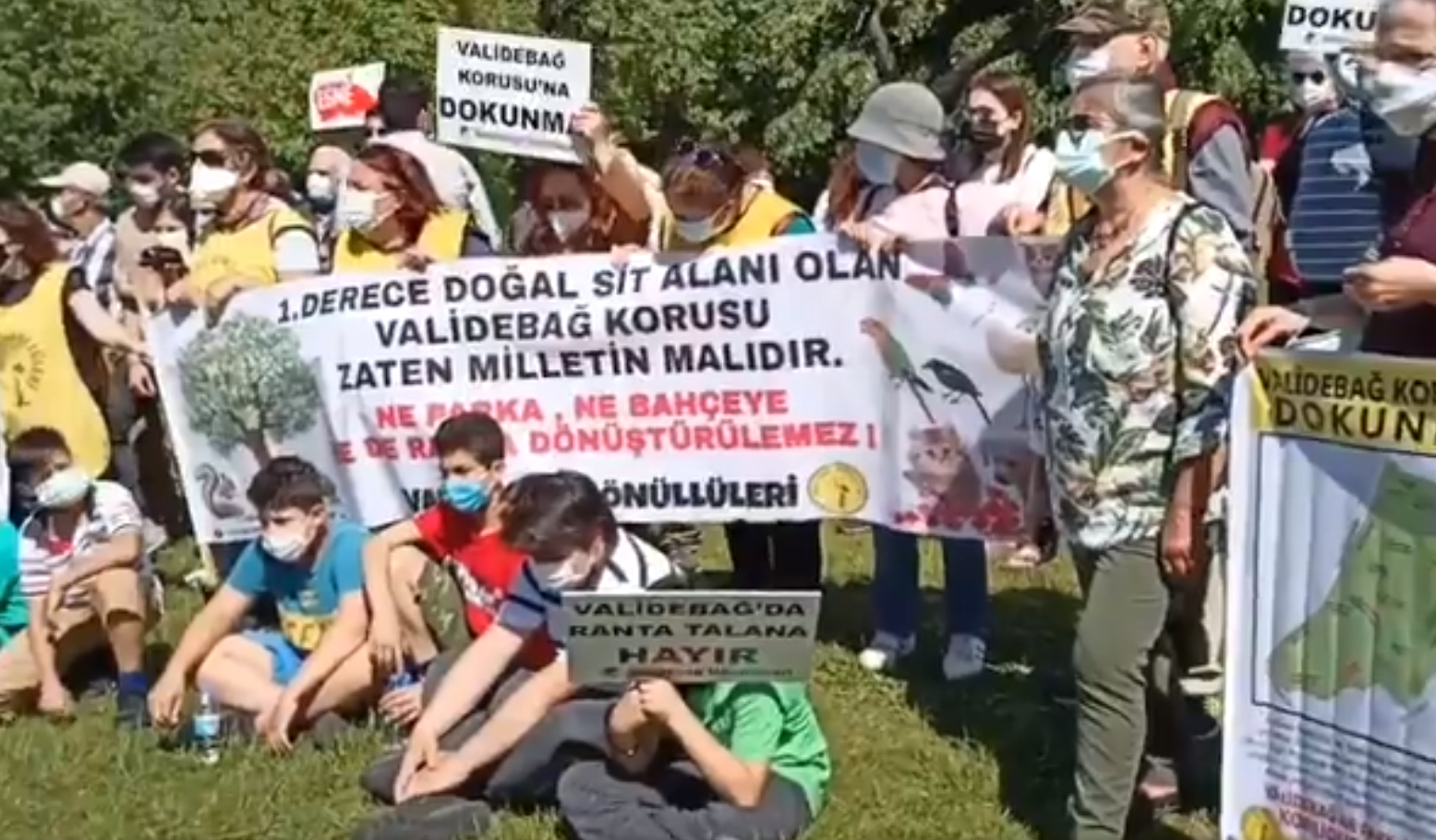 AKP’li Üsküdar Belediyesi ilçede bulunan ve 1. derece doğal sit alanı niteliği taşıyan Validebağ Korusu’nu ranta açmayı hedefliyor. “Validebağ Korusu Düzenleme ve Rehabilitasyon Projesi” adı altında oluşturulan imar planına karşı Validebağ Gönüllüleri bugün koruda eylem düzenledi